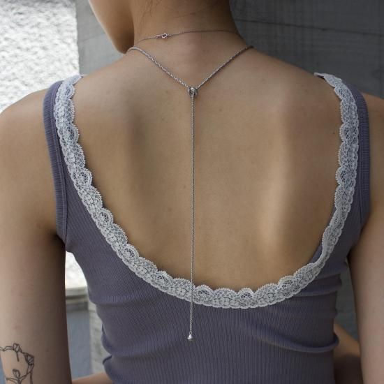 その日の気分で前にも後ろにも、長さも自在にアレンジできるネックレス。